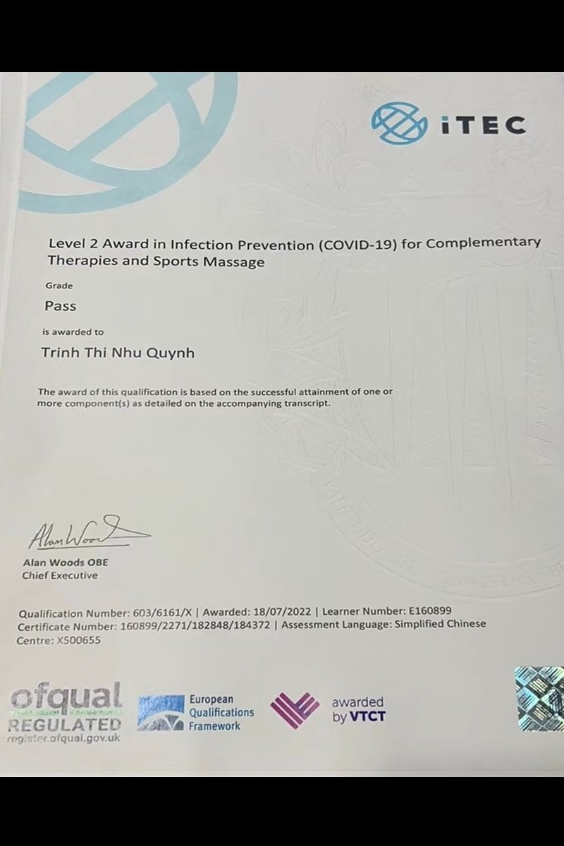 我是一位专业按摩师,拥有新加坡的工作背景。我的专长包括、中式按摩, 精油按摩和淋巴排毒型的按摩。鉴于每位客户的需求都不同,我始终鼓励客人与我沟通,以便我可以根据他们的要求量身定制按摩体验。我精通越南文,基本中文和基本英文,如果需要其他形式的交流,我可以随时请同事协助确保我们充分理解您的需求,然后开始按摩。